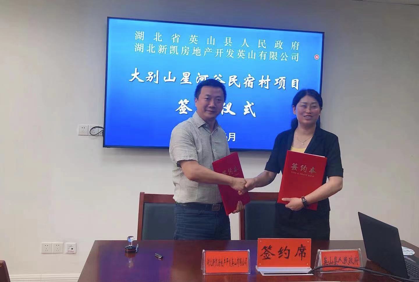 2021年6月,湖北新凱房地產(chǎn)開發(fā)英山有限公司與英山縣人民政府簽訂“大別山星河谷民宿村項目”投資框架協(xié)議書,該項目總用地面積400畝,將與湖北省文聯(lián)合作共同打造“文化名人”民宿村,使之成為英山文化度假的新坐標、黃岡文旅的新名片、湖北文化的新勢力。